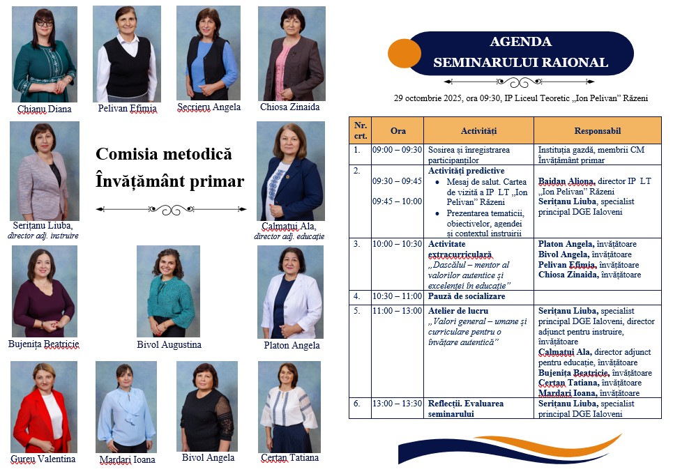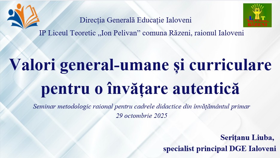 La data de 29 octombrie 2025, instituția noastră a fost gazda unui seminar metodologic raional dedicat cadrelor didactice din învățământul primar, unde am explorat împreună modul în care valorile curriculare și general-umane pot transforma lecția într-o experiență autentică de dezvoltare.